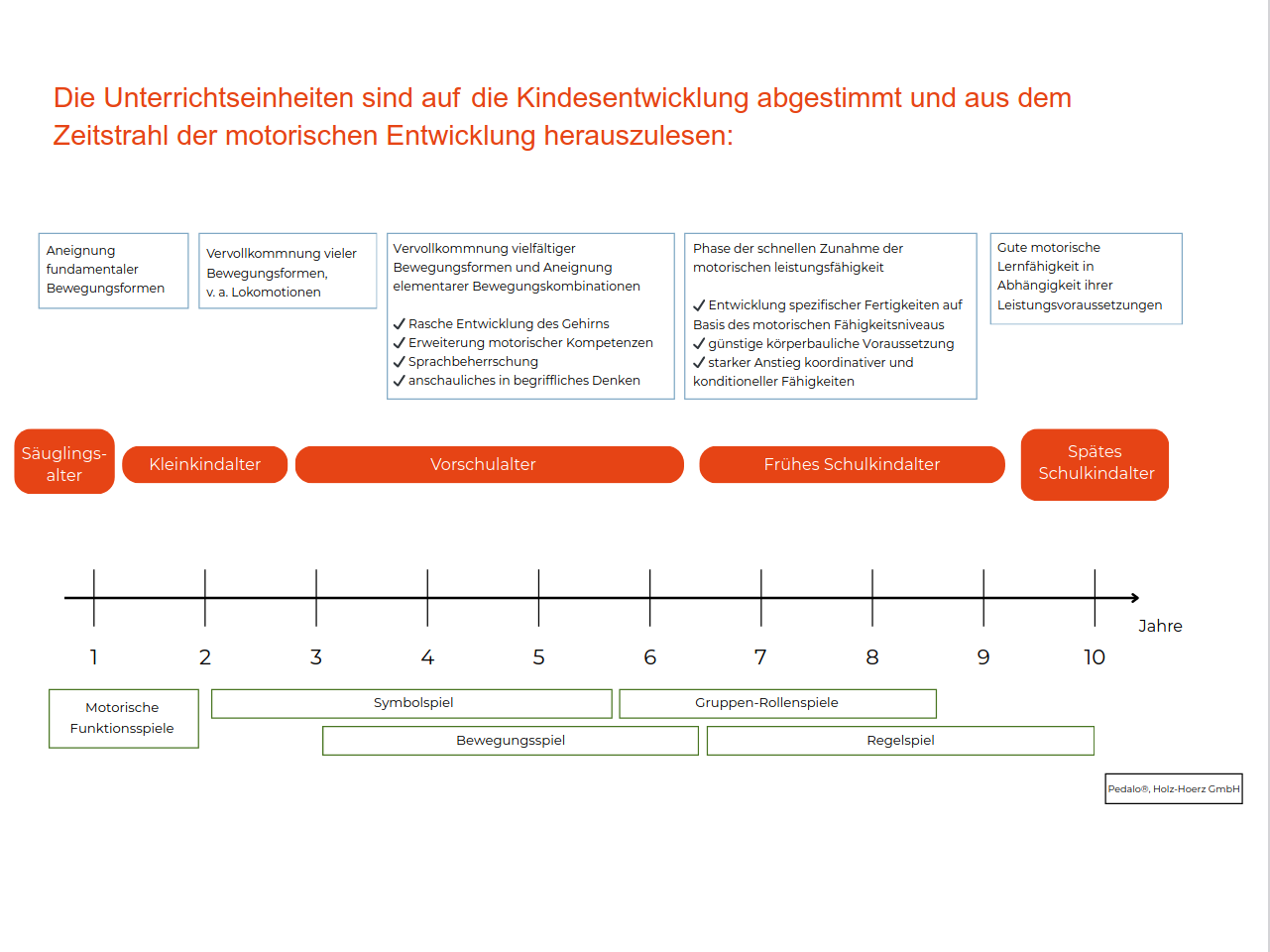 Abbildung: Motorische Entwicklung und Spielformen im Zeitverlauf (Quelle: Pedalo / Holz-Hoerz GmbH)