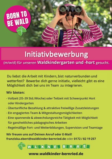 | 83278 Traunstein | Waldkindergarten Traunstein | Initiativbewerbung (m/w/d) | ganzjährig | Weiter |